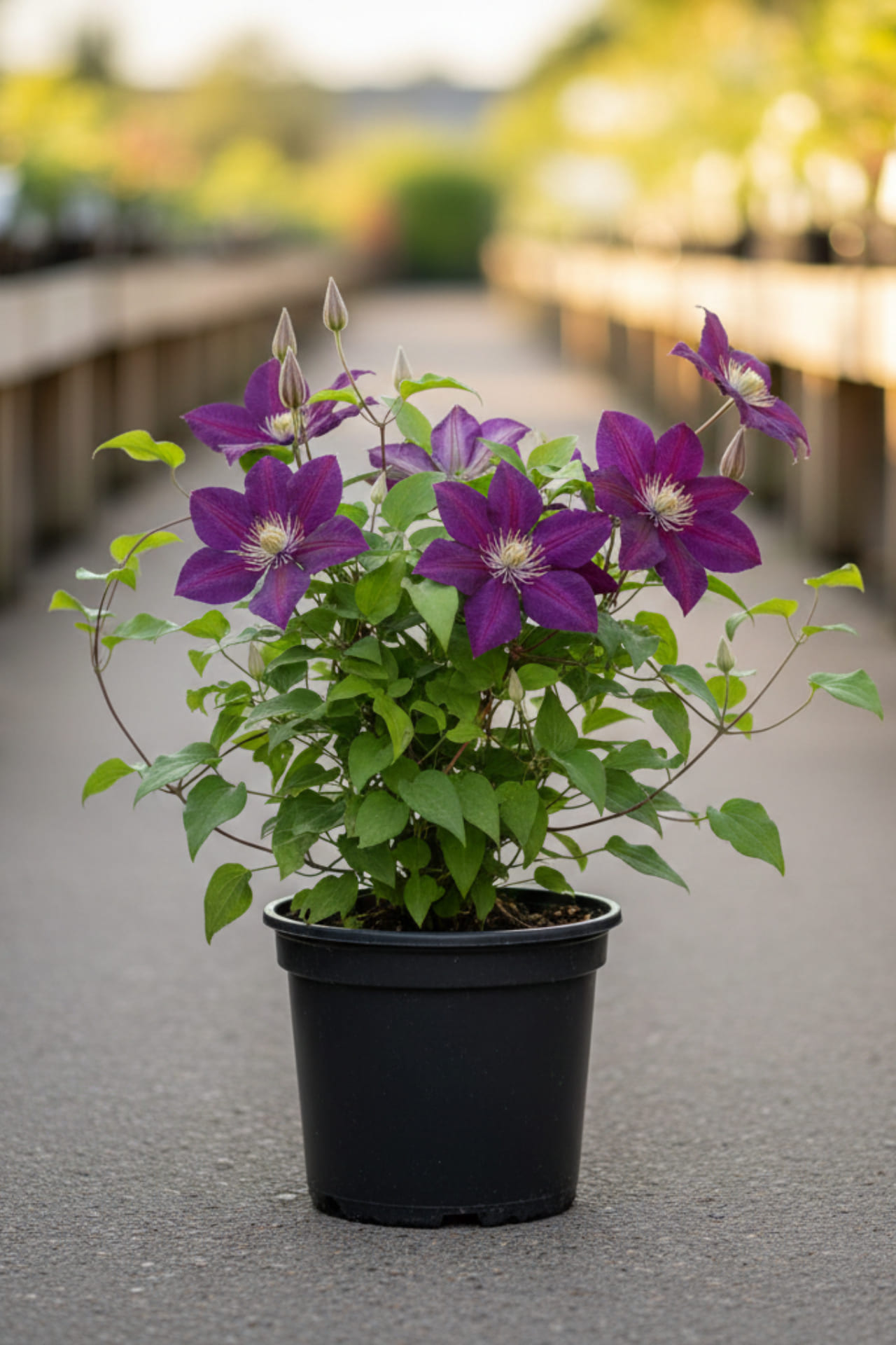 Крупный, устойчивый и обильноцветущий сорт с тёмными цветками: фиолетово-синими, слегка свисающими, с зелёными тычинками. Цветет с июля до октября. Высота 3-4 м. Идеально подходит для выращивания у ограждений, стен, беседок, пергол, решеток. Может карабкаться по натуральным опорам, небольшим деревьям, большим кустарникам лиственным или хвойным.