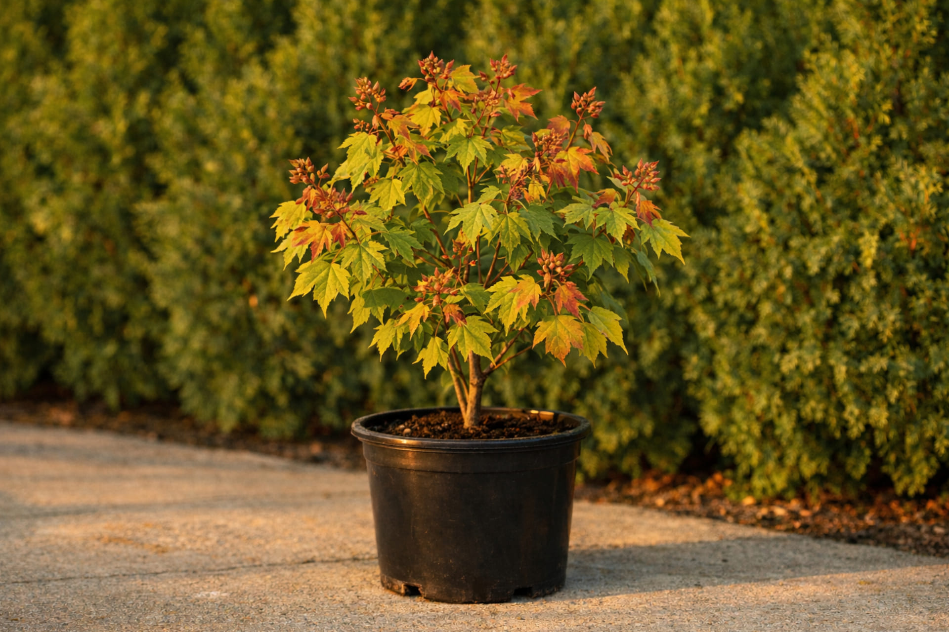 - Трех- или пятилопастные, при распускании бронзовые, летом зеленые сверху и сизые или беловатые снизу, на красных черешках. В осенний период верхняя сторона листа становится оранжевой, красной, нижняя — розовато-серебристой.