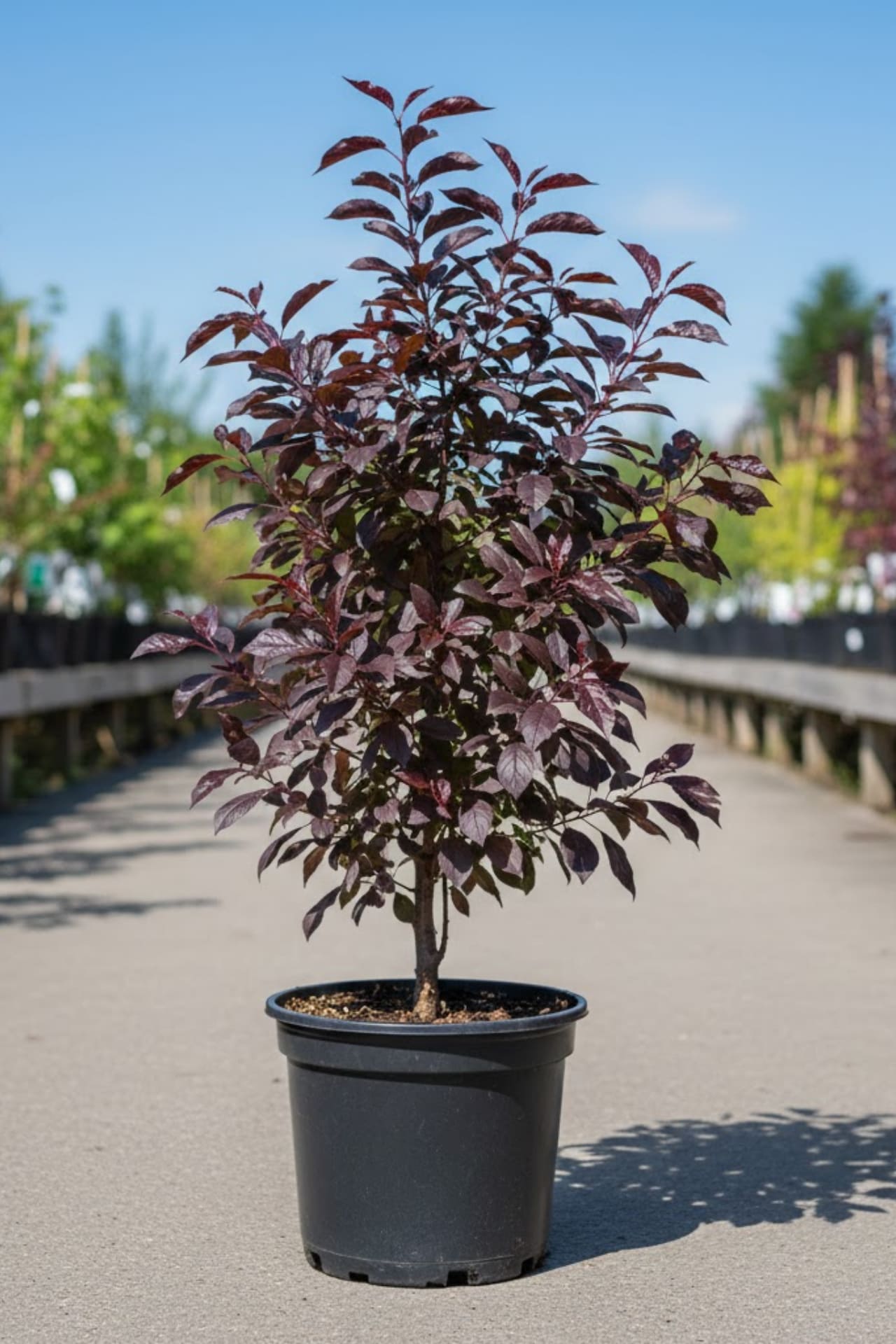 Небольшое дерево с низким штамбом и овальной кроной, достигающее 5м высоты и 3м ширины. Листья эллиптические, с металлическим блеском, темно- багряные, не меняют своей окраски в течение всего сеона. Цветки белые или розовые, появляются раньше листьев в апреле. Предпочитает средние суглинки. Сорт устойчивым к городским условиям и засухе. лучше высаживать оотдельно или в группе, рекомендуется в виде шпалер и стриженной живой изгороди. Светолюбива.