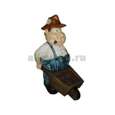Фигура садовая ДАЧНИК В ШЛЯПЕ С ТАЧКОЙ в Пензе
