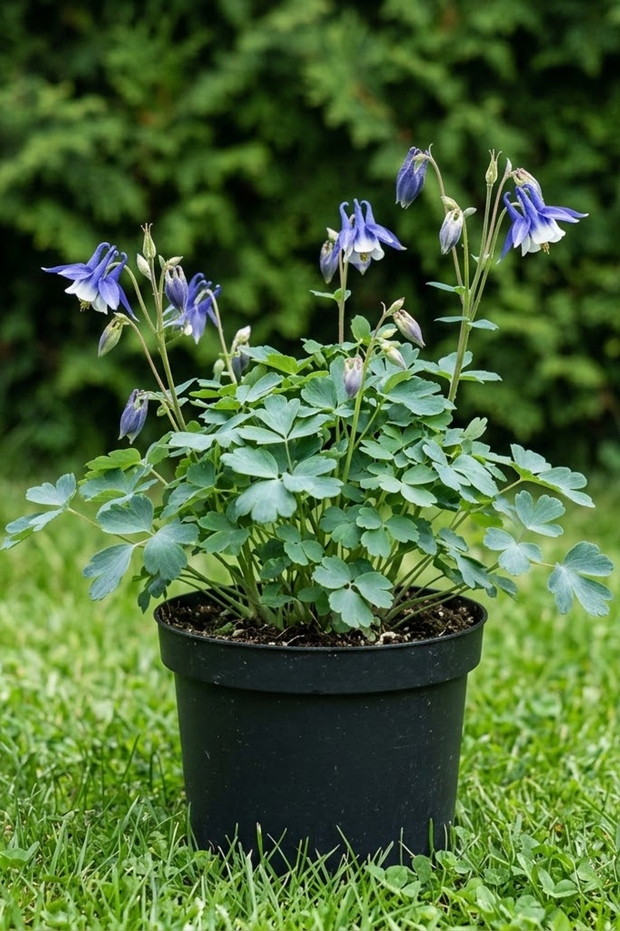 Низкорослый многолетник, форма карликовая до 25см высотой с ажурными голубовато-зелёными листьями.Цветки лилово-синие, по краю беловатые, шпорцы сильно загнутые.Эффектно выглядит в каменистых садах и в небольших цветниках.