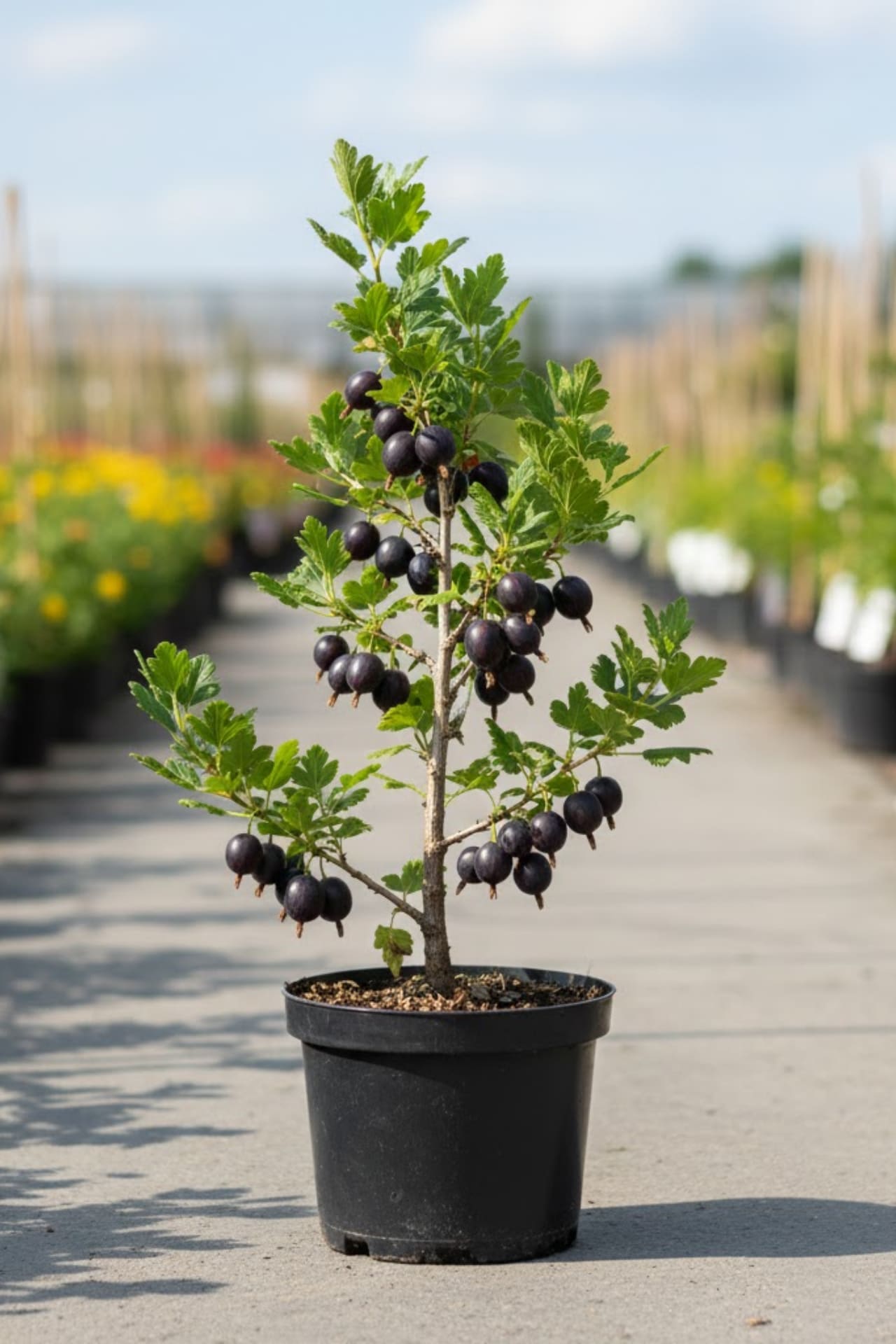 - Ягоды средние, округлые, с расширенным основанием, черные, с восковым налетом, сладко-кислые, технического назначения, кожица средне-плотная, отрыв легкий, ягоды не осыпаются.