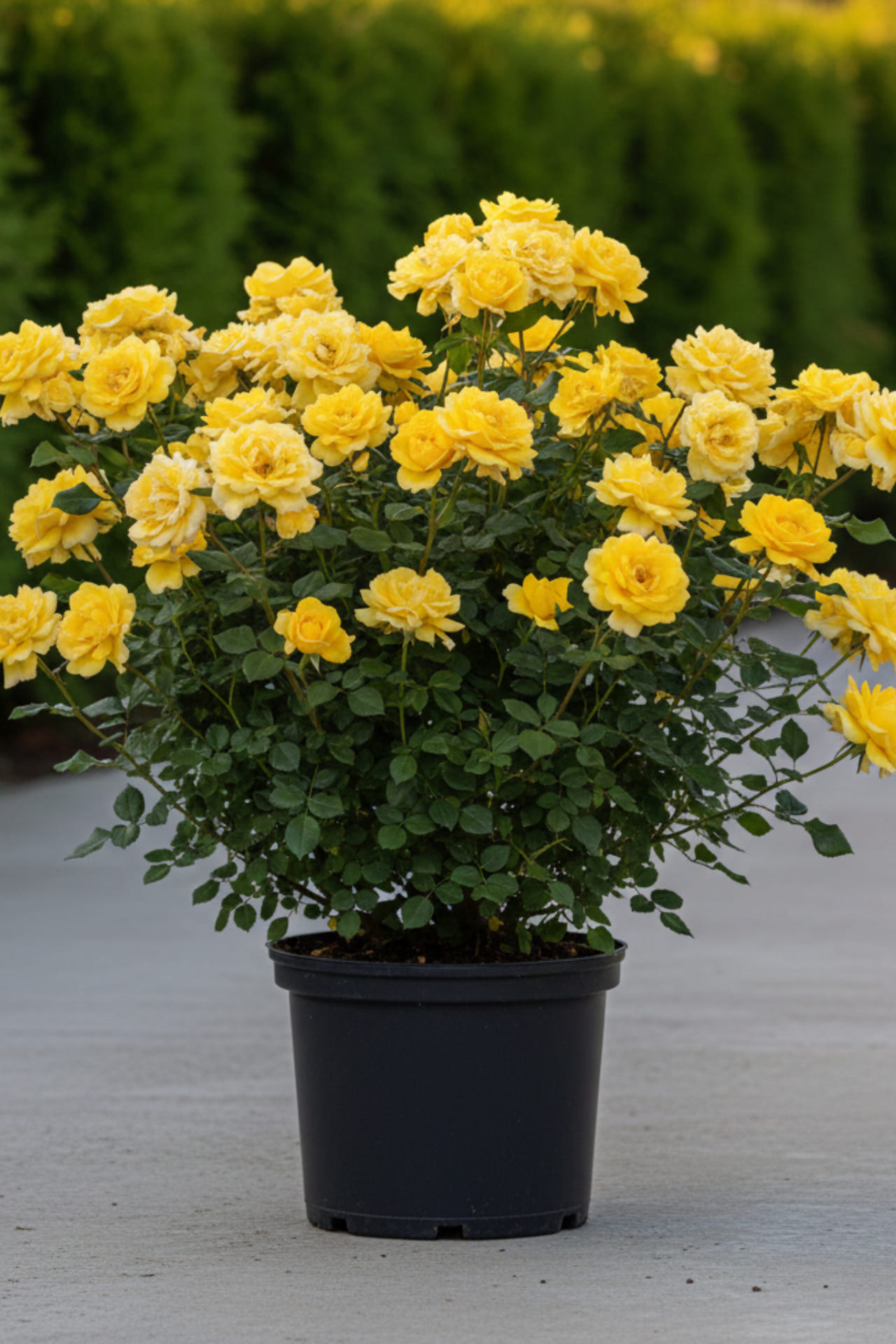 Один из лучших желтых сортов в группе, пользуется неизменной популярностью, благодаря очень обильному и продолжительному цветению. Куст усыпан цветами до самой осени! Удлиненные, элегантные бутоны раскрываются медленно в махровые цветки. Раскрывшись, они ярко-желтые, со временем выгорают до лимонных. Цветки собраны в крупные кисти. Листья мелкие, блестящие, устойчивы к заболеваниям. Кусты высотой до 150 см, с прочными побегами, формирующими хороший каркас, поэтому могут использоваться в качестве живых изгородей, пригодны для посадок группами