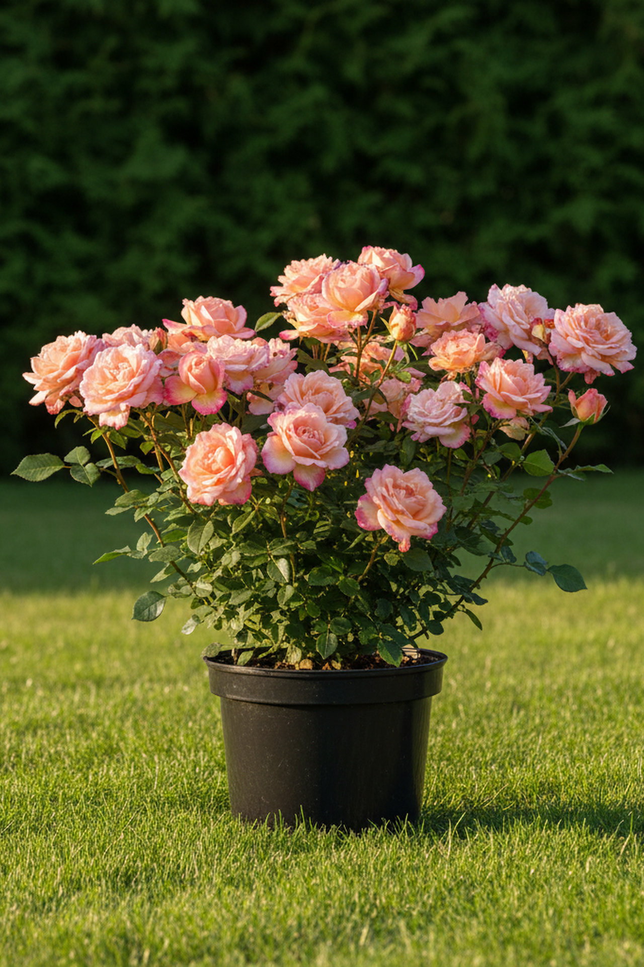 - . Цветки крупные персиковые. Цветёт дважды в сезон.