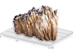 - Плоская, эллипсоидная со сложным контуром, на гранях отверстия, вздутия, наплывы, сталагмиты разной формы и высоты. Существуют объемные формы.